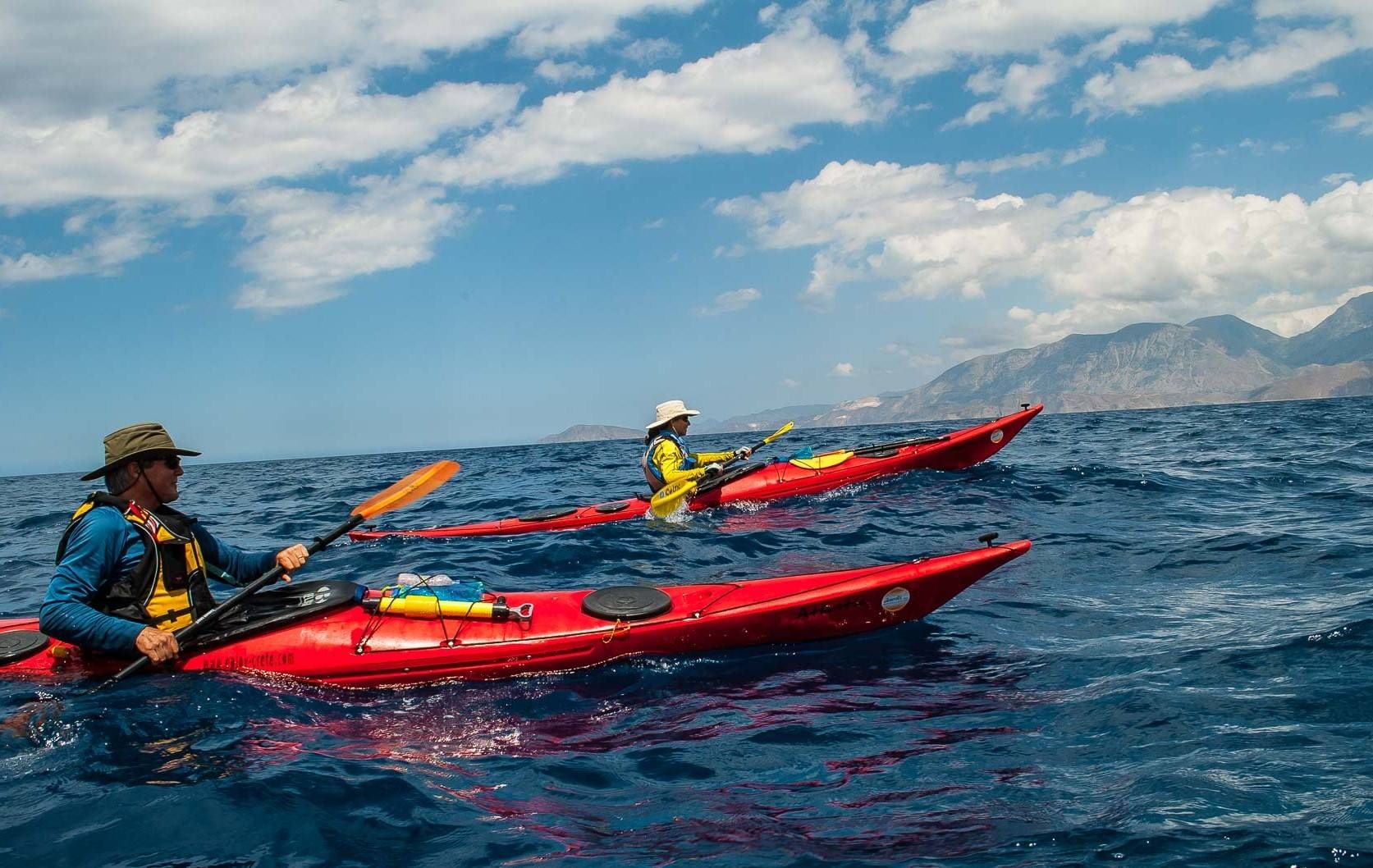 The expedition is for strong and competent paddlers (you need to be at 4* level) who would like to enjoy the experience of an extended sea trip and rough water. Dry suit is not needed as with a cag and a neoprene short or trouser you will be fine. Most of the times the ground temperature doesn’t go lower than 10-14oC while plenty of days with sunshine and near 18-20oC.