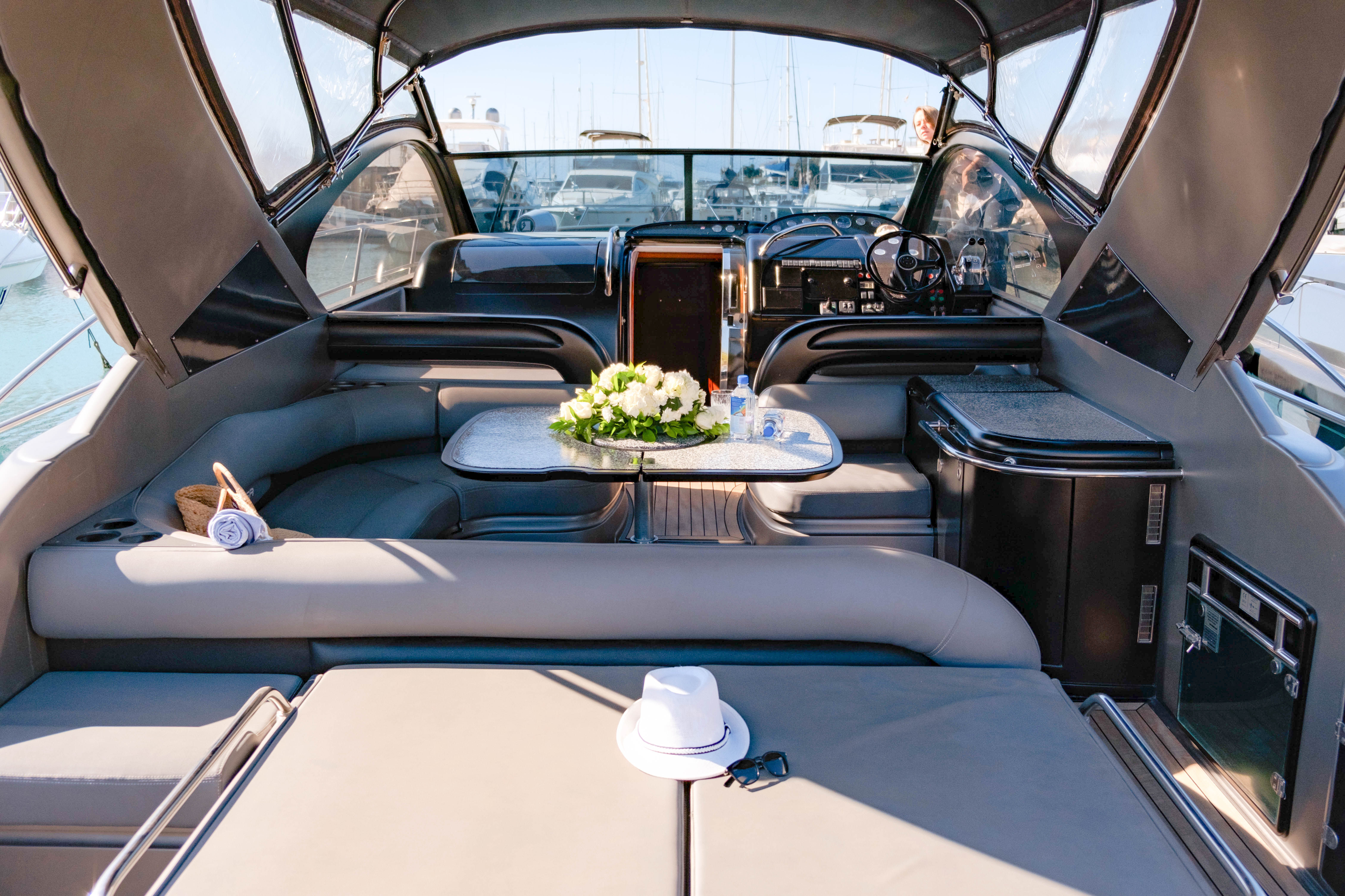 Whether you 're entranced by the horizon, luxuriating in the sun on the comfortable sun beds , or unwinding in the welcoming cabins , the Azimut 64 promises an unforgettable yachting experience.